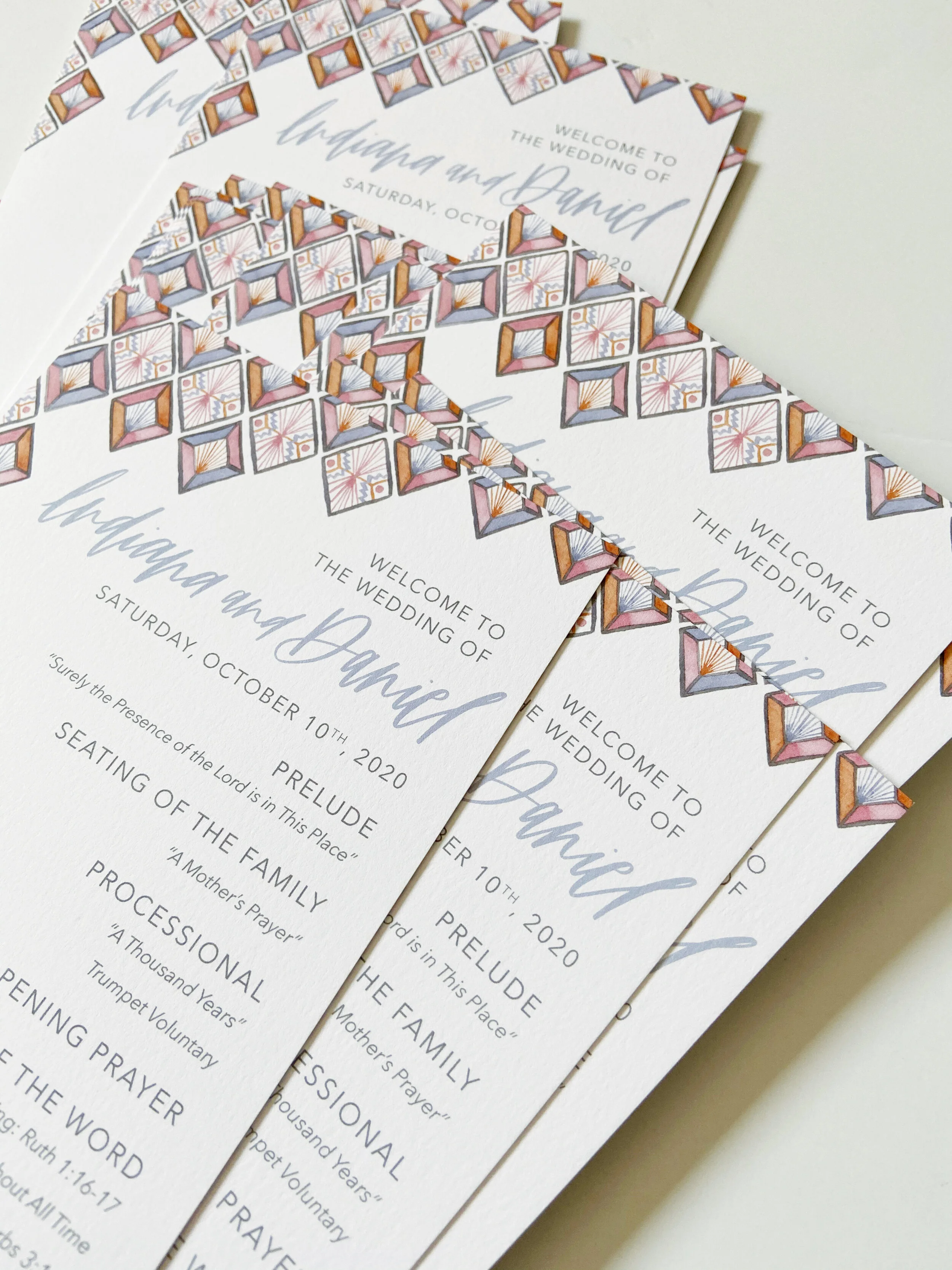“If you are pandemic bride, I don’t have to explain to you how challenging it has been to plan a wedding this year— or any celebratory event for that matter. From the beginning Brittany has been easy to work with and so very patient. During our first chat Brittany made me feel comfortable and really understood where I was going with my vision for stationery. She nailed the design on her first proof to me— all I had to do was provide her with my wedding palette and explain that I wanted a French elegant/ pastel Art Deco theme. Because of her we stayed on track with the timeline, even when my original venue could no longer host our event. When asked to adjust our stationery, she did so with haste but without compromising the beauty of the stationery design. Whenever I had meltdowns, she was supportive and assured me that my wedding day would make up for all of my troubles. She is a vendor committed to the satisfaction of her clients. I would recommend her to any bride looking for unique and personalized stationery. In the future I will be reaching out to Brittany for any other stationery that I may need.”